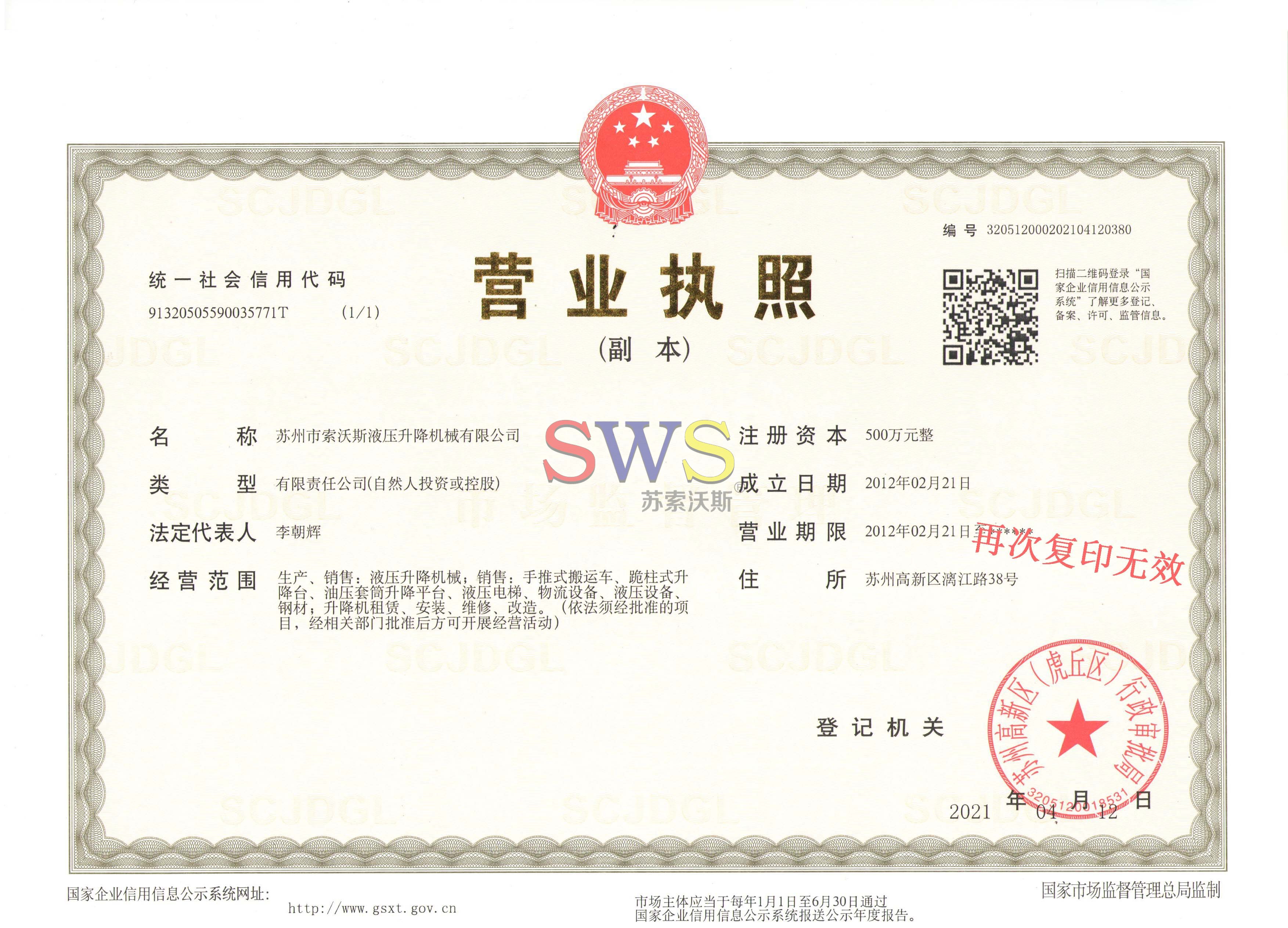 蘇州市索沃斯液壓升降機(jī)械有限公司