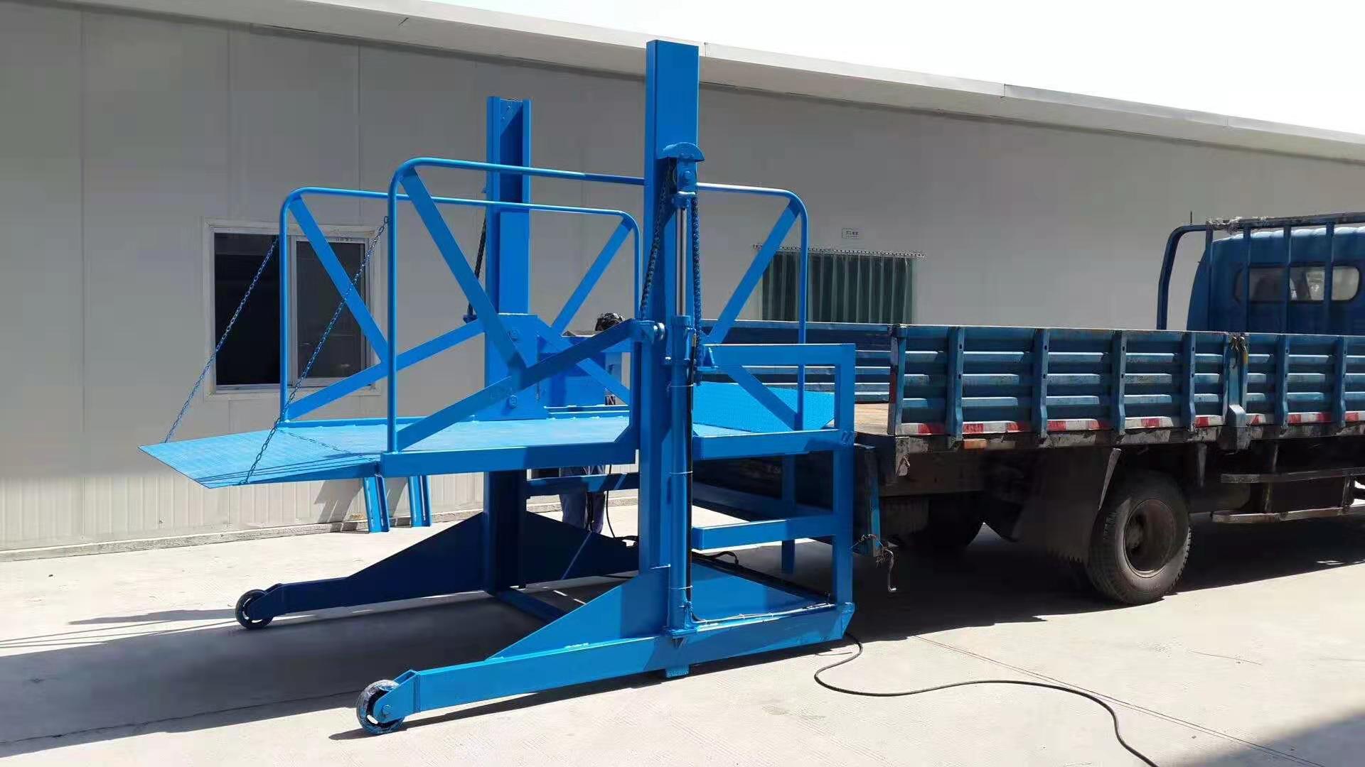 移動(dòng)式裝卸貨平臺用于配合貨車裝卸貨物。設(shè)備上的翻板對接貨車尾部,可以提升2噸的貨物,底部輪子移動(dòng)行走, 屬于流動(dòng)式的登車橋,大大利用工廠實(shí)際使用空間,提高裝卸貨的效率,減少人工成本。