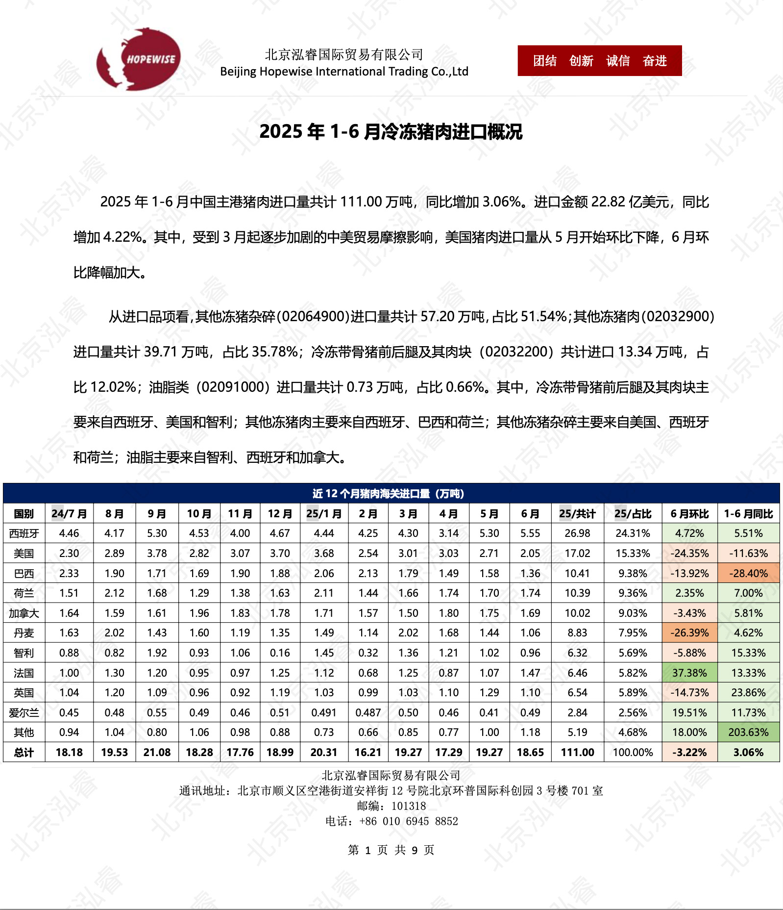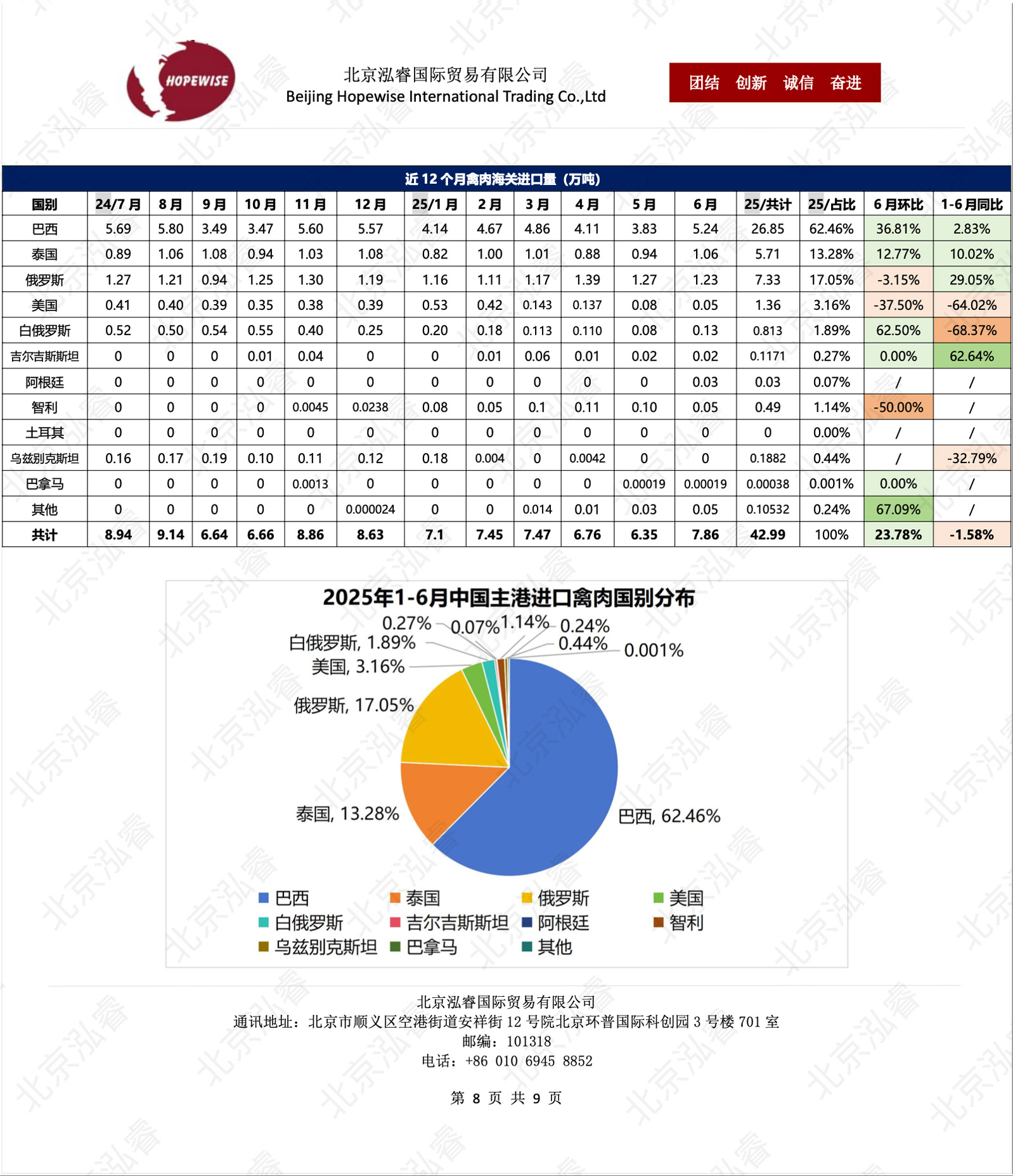 2025年1-6月冷凍豬牛禽肉海關(guān)進口數(shù)據(jù)