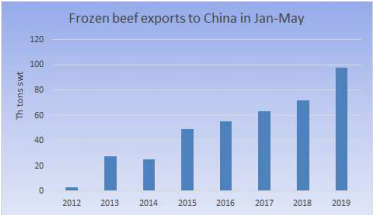 五月牛肉出口量達到12.1萬噸