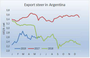 南方共同市場閹牛價格上漲6美分到2.74美金/公斤,三月中以來最高,主要驅動力來自巴西雷亞爾,雖然對經濟增長減速有所擔憂,本周還是增值3.5%,主要出口州牛價只上漲了0.3雷亞爾/15公斤,到141雷亞爾,但換算成美金牛價上漲了9美分到2.49美金。烏拉圭活牛市場還是過熱,閹牛價格本周再度上漲12美分,比其他國家都高了1美元/公斤以上。阿根廷和巴拉圭牛價沒有變化。