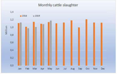 五月屠宰量今年至今最高,達(dá)到118萬(wàn)頭,也比去年五月高,不過(guò)前五個(gè)月總屠宰量537萬(wàn)頭,還是同比減少了2%。