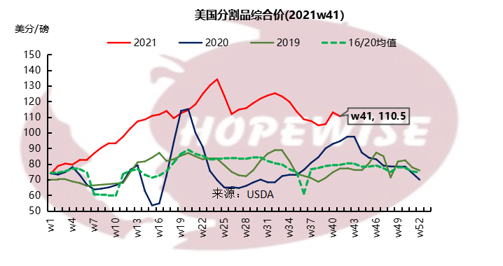 美國9月生豬均價0.83美金/磅,環(huán)比下滑15.45%,同比上漲47%。豬胴體價格1.07美金/磅,環(huán)比下滑10.47%,同比增長26.97%。生豬價格處于季節(jié)性下滑階段。9月最后一周,豬各部位肉的平均批發(fā)價格與6月中旬達到的年度峰值相比下降約20%。雖然生豬產(chǎn)量有增加,仍低于去年同期水平。9月周度生豬屠宰量246.08萬頭,環(huán)比增加2.13%,同比減少3.04%。生豬周度產(chǎn)量23.32萬噸,環(huán)比增加1.96%,同比減少3.36%。