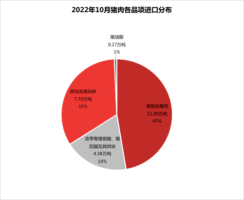 從進口品項看,其他凍豬肉和其他凍豬雜碎進口量之和占10月豬肉進口量的81%。