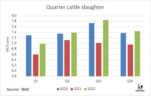 2022年第四季度牛屠宰量同比增長了7%