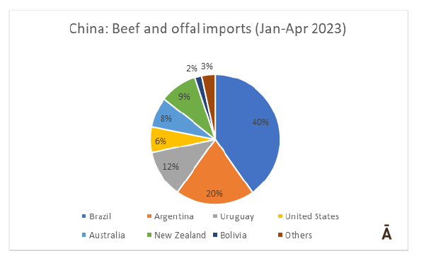 在2023年的前四個月里,玻利維亞增加了對中國的牛肉出口,這也使其成為繼南方共同市場三國(巴西、阿根廷和烏拉圭)、大洋洲國家(澳大利亞和新西蘭)之后的中國的第七大牛肉供應國。
