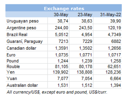 大家都注意到22-26周的智利市場更加活躍,這幾周把整個6月的訂單量都完成了。巴西的19/20切價格在$5,600-$5,700(CIF)。巴拉圭19/20切的價格在$5,800-$5,900美元。