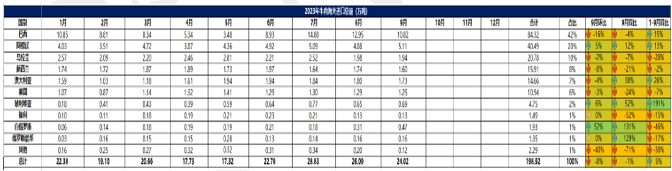 2023 年 9月冷凍牛肉進口概況