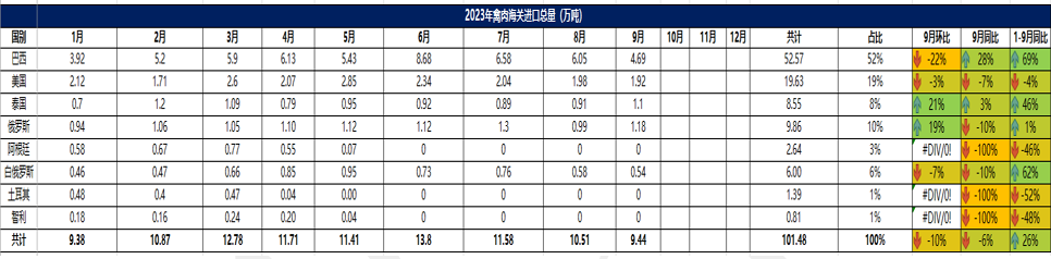 2023 年 9 月冷凍禽肉進口概況