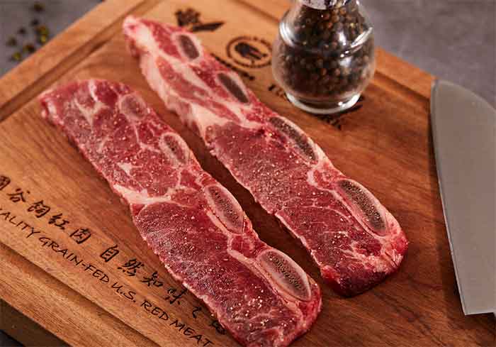 牛仔骨又稱牛小排,英文為Beef Short Rib,指的是牛的胸肋骨部位,但美國的分割標準中,帶骨頭的統(tǒng)稱為“牛仔骨”或“牛帶骨小排”(Beef Short Ribs,Bone-In),不帶骨頭的統(tǒng)稱為“牛小排”(Beef Short Ribs Boneless)。