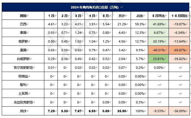 2024年1-5月冷凍禽肉進(jìn)口概況