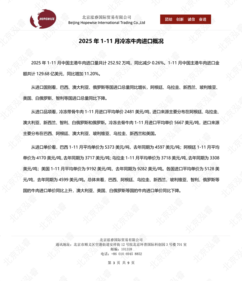 2025年1-11月冷凍豬牛禽肉海關(guān)進(jìn)口...