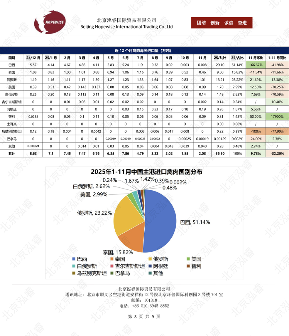 2025年1-12月冷凍豬牛禽海關(guān)進(jìn)口數(shù)據(jù)