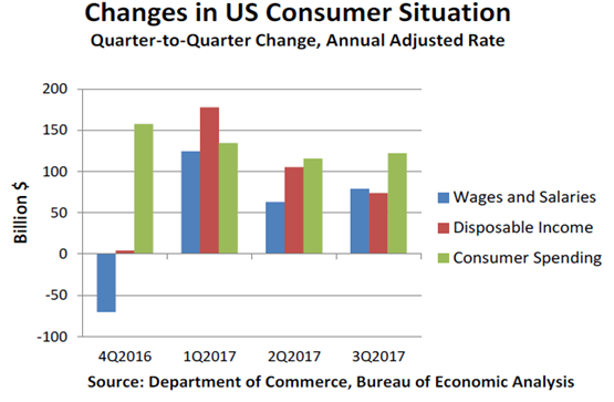 11月零售貿(mào)易和食品服務(wù)銷售總額整體同比上漲6.4%,是2017年年同比增幅最大的一個月。但這并不能說明食品行業(yè)的零售業(yè)績。 相較于通常所謂的消費(fèi)者行為驅(qū)動助力而言,消費(fèi)者的需求支出一直堅(jiān)如磐石。收入和工資增長,也包括2016年年底的可支配收入的乏力在2017年也回到了積極的軌道。這就為來年消費(fèi)者支出的持續(xù)增長提供了更多鼓勵,也意味著零售銷售的可喜趨勢。隨著去年最后一個季度中的加速下跌趨勢,今年一整年食品零售總額下降了一個百分點(diǎn)。鑒于這種趨勢,牛肉需求的表現(xiàn)也是非常不錯的。