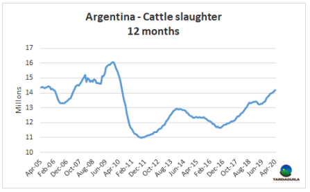 盡管受到隔離令的影響,4月阿根廷牛只屠宰量118萬頭,較3月增長8.7%。今年前4個月阿根廷牛只屠宰量達(dá)442萬頭,比去年同期增長5.2%。4月巴西美麗華集團(tuán)的Swift廠屠宰量排在首位,在2020年屠宰量排名中超過阿根廷連鎖超市集團(tuán)COTO重新成為排在第一位,COTO排在第二位。Rioplatense,ArrebeefGorina位列其次,分別排在第三第四和第五位。由于至中國貿(mào)易量下降隨后又恢復(fù),母牛屠宰量占48.6%,與3月屠宰量相比有所提高。