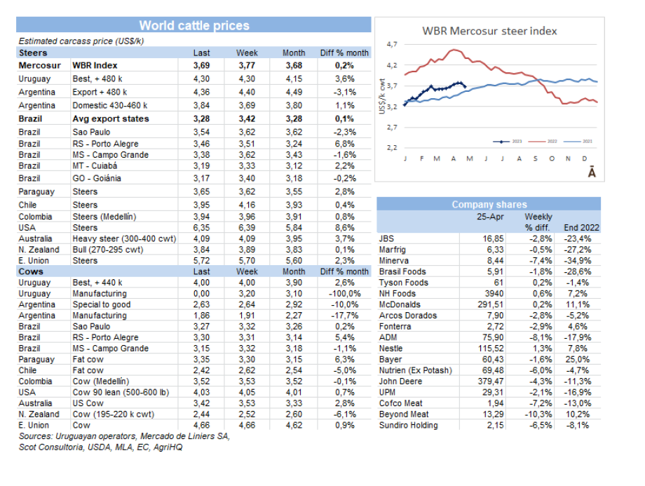 在巴拉圭,待宰公牛的最新交易價格為每公斤$3.65,但本周該行業(yè)停止購買,預(yù)計市場將面臨下行壓力。