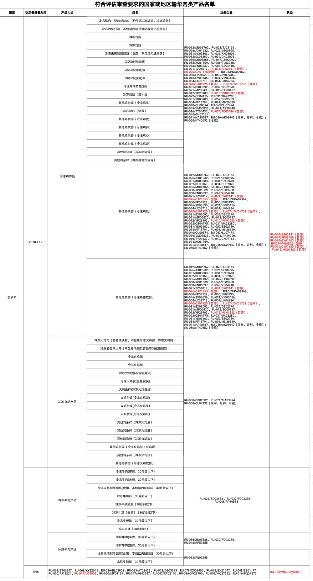符合評估審查要求的國家或地區(qū)輸華肉類產(chǎn)品...