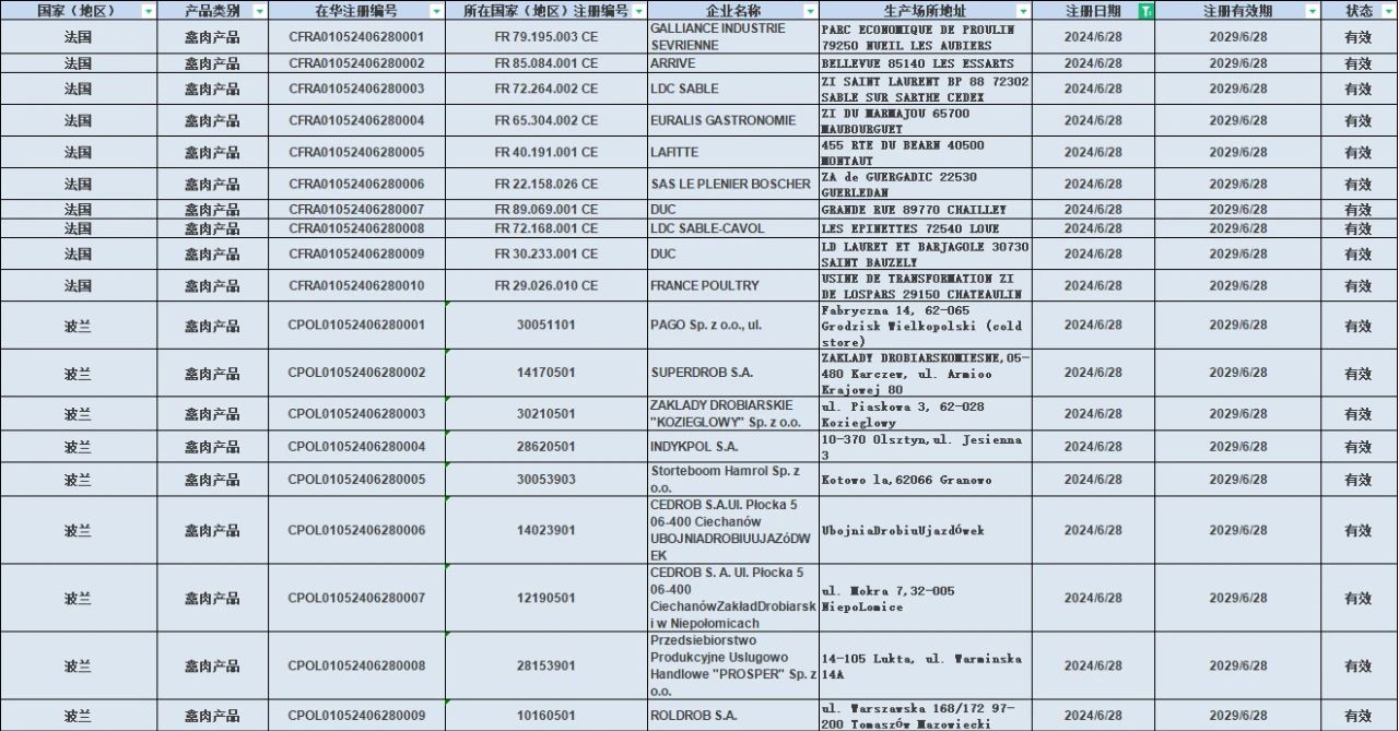 波蘭9家禽肉產(chǎn)品,廠號:30051101、14170501、30210501、28620501、30053903、14023901、12190501、28153901、10160501;