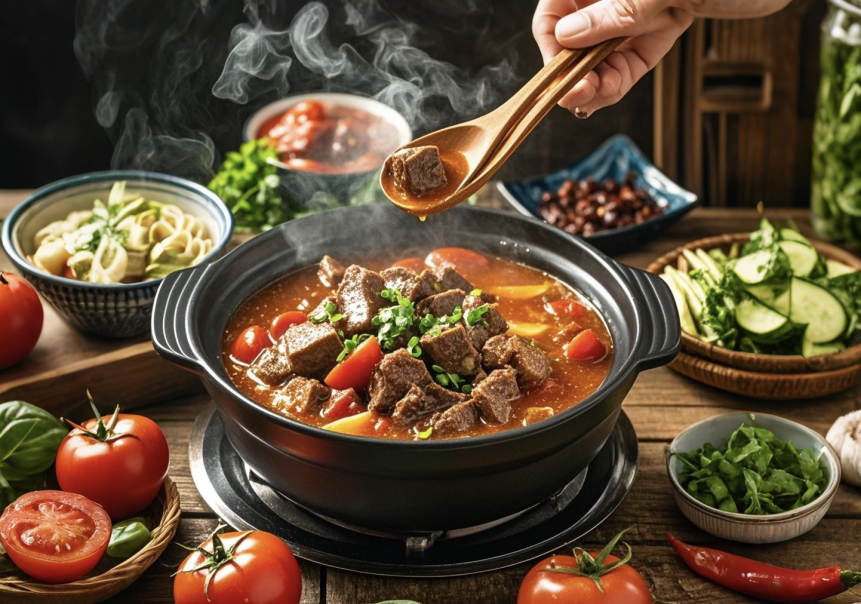 廣式清湯牛腩火鍋以其清淡鮮美而著稱(chēng)。清澈的湯底,用牛骨和拍姜、香葉、玉竹、陳皮、炒香的胡椒等各種香料熬制而成。牛腩在清湯中煮至軟爛,保留了牛肉的原汁原味,可加入大塊蘿卜。吃的時(shí)候,可以蘸上特制的沙茶醬、海鮮醬或腐乳蘸料等,口感更加豐富。廣式清湯牛腩火鍋?zhàn)⒅厥巢牡男迈r和品質(zhì),通常會(huì)搭配上各種海鮮、肉丸、蔬菜等,鮮美溫補(bǔ)。