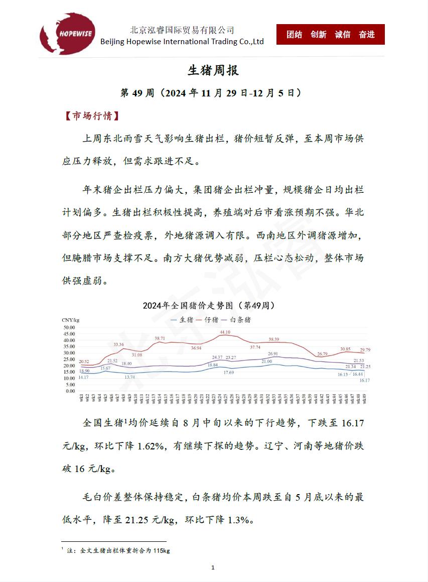 生豬周報(bào)第49 周(2024 年11 月29 日-12 月5 日)
