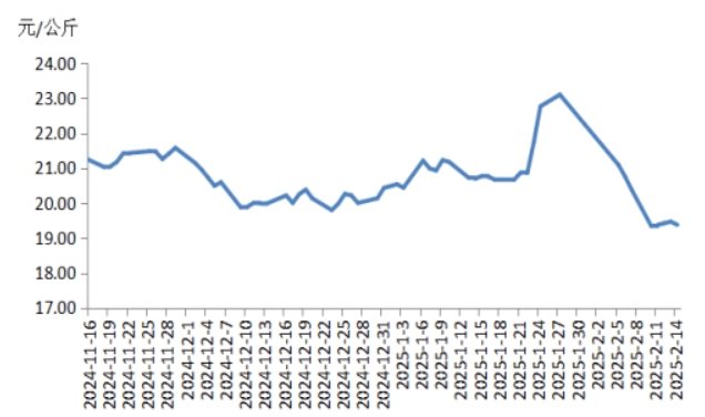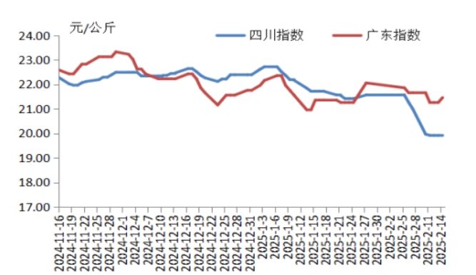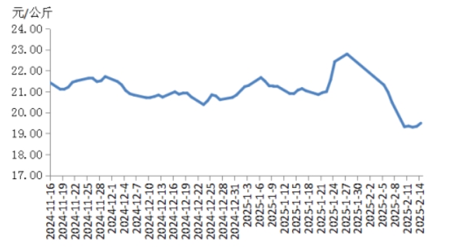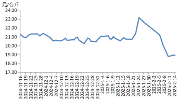 本周華中地區(qū)豬肉價(jià)格環(huán)比明顯下跌,周內(nèi)價(jià)格先跌后漲。前半周,規(guī)模養(yǎng)殖場(chǎng)的生豬出欄量增加,散養(yǎng)戶將春節(jié)節(jié)前壓欄豬源陸續(xù)釋放,使得生豬及豬肉供應(yīng)充沛,而豬肉消費(fèi)表現(xiàn)一般,元宵節(jié)提振力度較弱,致使屠宰企業(yè)訂單銷售速度不快,豬肉價(jià)格明顯下跌。后半周,各院校開學(xué)后食堂訂單小幅增多,經(jīng)銷商采購(gòu)積極性增加,帶動(dòng)豬肉價(jià)格有所反彈,幅度有限??傮w看,本周華中地區(qū)豬肉周均價(jià)明顯低于上周。
