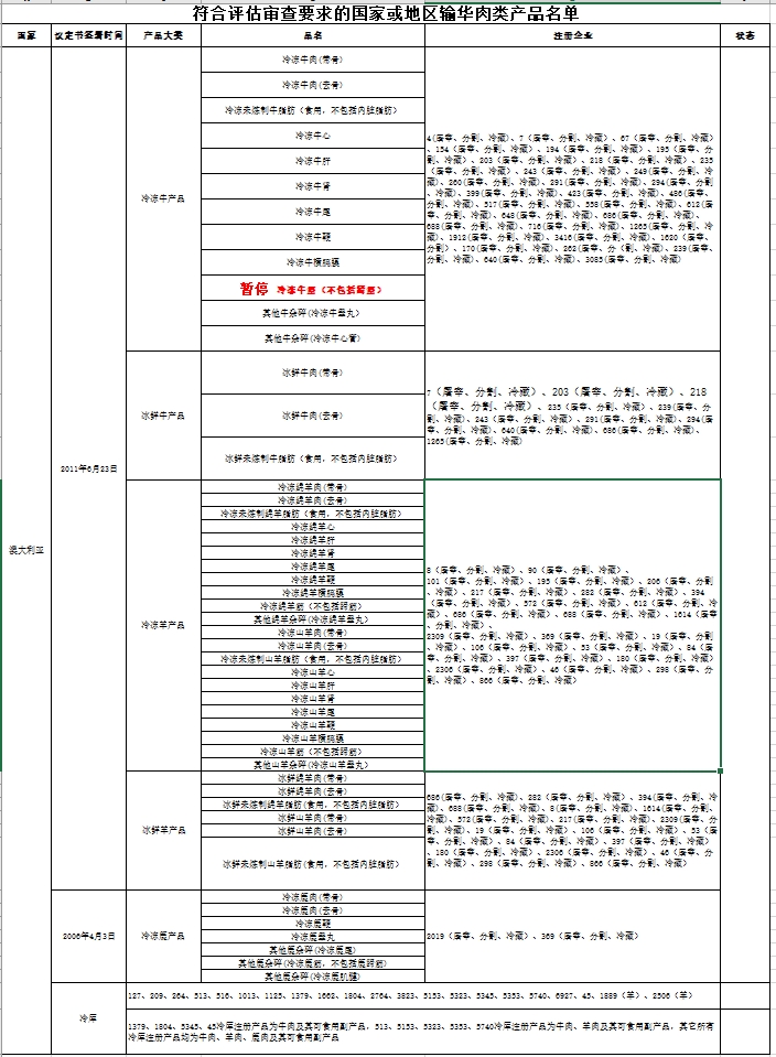 符合評估審查要求的國家或地區(qū)輸華肉類產(chǎn)品名單(2025年4月24日)