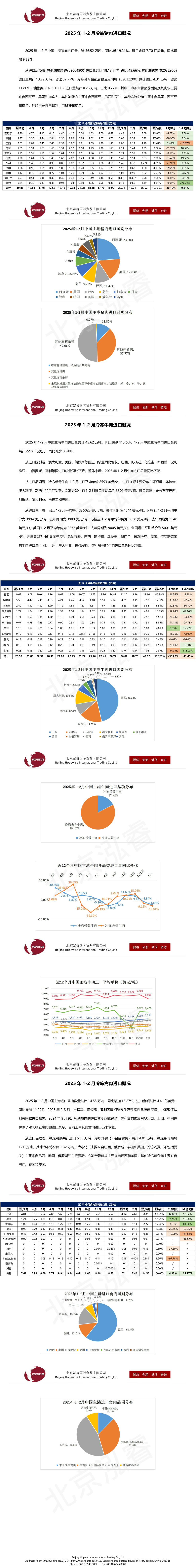 2025年1-2月冷凍豬牛禽肉海關(guān)進(jìn)口數(shù)據(jù)